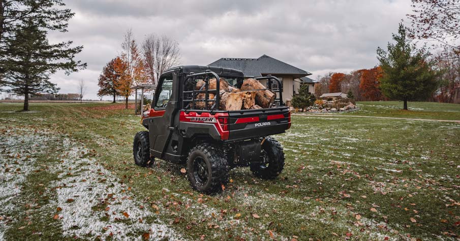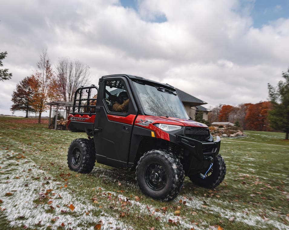 - Premium Pro-Shield Cab w/ Roof; Doors with Crank Windows; Fixed Glass Windshield with Wiper; Rear Glass Panel; Factory-Installed Heat, AC, Defrost; Rearview Mirror; Premium Steering Wheel and Interior Accents; NorthStar Tailgate Badge; Front Bumper with Integrated Winch, Plow & LED Mounts; Premium Cut & Sew Seats with Contoured Seatbacks and Embroidered Polaris Branding; Polaris HD 4500 lb Synthetic Rope Winch with Autostop and Wireless Remote; Polaris Pulse Electrical System (6-Position) Underhood Busbar and 6-Position Roof Busbar; 12V Accessory Outlet; Battery Trickle-Charging Outlet; USB Outlet, Factory-installed cab system with powered doors, roof, glass tip-out windshield, glass rear panel, rearview mirror, windshield wiper/washer, and sound insulation materials.